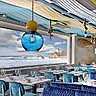 Bleu comme la mer, jaune comme le soleil et blanc comme le sable fin de la plage, Carlos Pujol a surfé sur cette gamme pastel et des tons plus neutres pour créer un nouvel univers. Il a même repeint le cadre des appareils de chauffage accrochés au plafond que l’on ne pouvait pas remplacer pour des raisons de budget. Ces trois teintes sont déclinées dans le mobilier, les objets décoratifs et les éléments intégrés comme les étagères du bar qui font penser à un bistrot du sud de la France. Et sur les murs, des photos vintage noir et blanc de surf et des planches de shaper, pièces uniques faites à la main par un artisan et véritables œuvres d’art, prêtées pour sublimer cet endroit qui a retrouvé sa véritable identité.