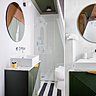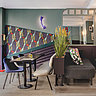 Cette ambiance feutrée qui s’accompagne d’un mobilier aux lignes rondes ou plus géométriques avec des touches graphiques librement inspirées du style Memphis, revisite aussi un style ethnique chic. Bleu sombre et chic, vert ponctué de touches jaune dynamique, et esprit costume cravate grise et rouge, l’esprit masculin est décliné, ici, par deux sensibilités féminines. Et elles nous séduisent avec leurs harmonies de couleurs très travaillées, leurs notes d’humour et leurs détournements en forme de clins d’œil à l’hôtellerie classique.