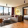 Les œuvres d’art, spécialement créées pour ce lieu, dessinent un fil rouge. Sélectionnées par Michael Malapert, architecte d’intérieur, elles dépassent le simple contexte décoratif, car elles se font l’écho de l’architecture particulière des silos. Dans les chambres, le bois du mobilier, le velours des rideaux et le laiton des luminaires donnent vie au béton brut. Un motif or au plafond reprend les traces des appellations des vins de Bordeaux. Les photos noir et blanc de Damien Boisson-Berçu évoquent les lieux emblématiques de Bordeaux. Dans certaines chambres, elles résonnent avec les œuvres graphiques de l’illustrateur Séverin Millet ou les gravures sur papier gaufré de Marie-Christine Foucher-Poignant. Tandis que les œuvres abstraites constellées de points dorés d’Alix Waline, que l’on retrouve en triptyques dans la galerie de liaison, menant au lobby et aussi dans les chambres, évoquent les grains des céréales produisant l’huile. Et dans les bibliothèques et les espaces de séminaire, les sculptures et œuvres murales de Bertrand Fompeyrine ont été réalisées à partir de matériaux trouvés sur le chantier.