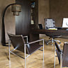 Il fallut tout d’abord s’attaquer à l’entrée qui était envahie par un escalier disproportionné. C’est le bureau d’architecte Etau qui a conçu les coursives surplombant l’entrée et débouchant sur un escalier en chêne clair, laissant respirer cette pièce au volume impressionnant. La partie salon a été réinventée en abattant toutes les cloisons d’une multitude de petites pièces pour créer un seul grand espace, prolongés de deux bureaux. Fil conducteur dans presque toute la maison le parquet à larges lames en chêne grisé court d’une pièce à l’autre. Le salon est prolongé des deux côtés par le bureau de madame et celui de monsieur et l’espace laissé libre entre les trois pièces forme une longue galerie.