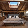 Le rez-de-chaussée dessine un grand volume: une pièce-à-vivre scindée en deux parties, d’un côté le salon avec sa cheminée et de l’autre, la salle à manger donnant sur une terrasse avec une vue panoramique, une cuisine équipée et un coin repas. Au 1er étage, on trouve 3 chambres doubles avec salles de bain et sanitaires : une suite avec un lit XXL et une chambre pour deux enfants. Au 2ème étage, une somptueuse chambre de maîtres, traversée par la lumière naturelle et dotée d’une exceptionnelle vue plein sud sur les montagnes, occupe tout l’espace, avec une petite chambre d’enfant.