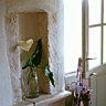 La végétation luxuriante donne à présent libre cours à ses assauts le long de la façade, le laurier sauce pousse comme du chiendent et les arums sauvages se reproduisent à l’envi pour la plus grande joie des habitants qui se reposent sur le banc de pierre et sentent le parfum des fleurs sauvages.