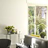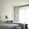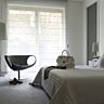 La grande table de salle à manger carré de coloris moutarde est le point d’orgue de cette zone ouverte sur la cuisine. Les 12 chaises en cuir gris trouvent tout naturellement leur place autour de ce meuble à la fois épuré et original en laque moutarde. La partie privative a été également très soignée. La chambre parentale, dont la lumière est filtrée par un store en résille, met en valeur le grand meuble dessiné par Pascale Benhamou et fabriqué sur mesure en laque grise.