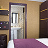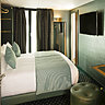 Les 31 chambres sont imaginées comme des cabines. L’agencement, sans place perdue fait référence à l’organisation des trains où chaque millimètre compte pour offrir un maximum de confort dans un minimum de surface. Dans les salles de bains, les carreaux de métro graphiques et blancs jouent avec les lignes rétro de la large vasque en céramique et les grands miroirs inclinables. Au sol, un dallage en grès cérame qui imite les nuances du métal vieilli. Au 1er et 3ème, desservies par un petit couloir privatif, deux chambres reliées entre elles permettent aux familles de raccrocher les wagons pour voyager en toute sérénité.