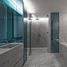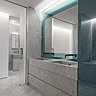 Cet appartement est caractérisé par un jeu de cloisons translucides. Panneaux courbes et coulissants se fondent dans un jeu de textures vivantes, des laques, des marbres, des bois, des miroirs colorés et des couleurs pastel. Ici, le plafond est une œuvre lumineuse à part entière, une véritable surface organique cachant les sources pour ne conserver que l’éclairage, filtrant la lumière naturelle pour la rendre encore plus belle. « Les 150 m² de plafond qui unifient et distribuent les espaces salon, entrée et cuisine sont une performance en soi. J’ai dessiné une ondulation très douce, comme une plage à la surface ridée par les vagues, qui vient bousculer le minimalisme de l’appartement en organisant les espaces de vie, » précise Nicolas Dahan. Le savoir-faire italien est ici à l’œuvre pour chaque matériau : marbre, miroiterie, parquets sont fabriqués à Padoue, livrés et installés à Moscou « pour une excellence des détails, une totale invisibilité des systèmes et une mise en avant de la matière », re-précise l’architecte. Et chaque élément, chaque fonction a été dessinée par l’architecte français pour créer un écrin d’une grande pureté.