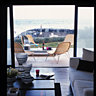 A part la cuisine, toutes les pièces font face à la mer. Par grand temps, les embruns opacifient les grandes baies. La cuisine est traitée dans les mêmes matériaux et revisite le thème de cuisine laboratoire des années 60.