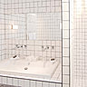 La salle de bains est aussi intégralement recouverte de mosaïque de pâte de verre poudrée.