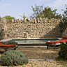 De la rue, nul ne peut imaginer que la maison se prolonge par un grand jardin que Klaus a découvert, joyeux désordre de bicoques en pierres, poulaillers et abris à bois. Tout fut démoli et les pierres récupérées une à une pour remonter les murs de la nouvelle enceinte où Klaus, après avoir fait niveler le terrain en pente, a pu implanter une piscine à débordement qui semble avoir toujours existé. Des buis, des lauriers roses et le bassin en pierre d’Estaillades, tout est pensé pour le confort et l’agrément des amis souvent présents. Courant sur ses à-plat de chaux vive, la lumière semble pénétrer dans les moindres recoins, percer les treillages des persiennes et glisser sur les contours des voutes. Au zénith, à l’heure blanche écrasante, l’intérieur offre un bienfaisant refuge pour échapper à la grande chaleur.