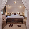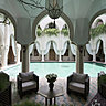L’hôtel se situe à l’emplacement des anciennes écuries royales, comprend 12 chambres et suites, un spa, un hammam et une piscine pour goûter à tous les délices de l’art de vivre oriental. Côté déco, alcôves secrètes, meubles en bois sculpté, tadelakt au toucher sensuel, carrelages traditionnels marocains, tissages rustiques des bédouins, objets d’art populaire comme les fez ou tarbouches (couvre-chefs en feutre rouge), on retrouve des références culturelles de la décoration marocaine déclinées sur un mode contemporain, sans folklore excessif. Juste des traces héritées du passé semées comme indices dans une architecture aux connotations orientales, qui jouent avec l’ombre et la lumière.