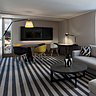 Le Simon Hôtel propose 94 chambres et suites, lumineuses et très spacieuses : 71 chambres standard, 6 chambres familiales, 3 chambres pour personnes à mobilité réduite, 11 chambres « twin », 2 suites et un appartement avec terrasse panoramique. Pour toutes ces chambres, DL2A a créé le mobilier, les bureaux et autres meubles, les lits et têtes de lit pour créer des éléments sur mesure et en parfaite adéquation avec l’espace. Au sol, des jeux de décors graphiques avec des carreaux de grès cérame, (collection Labyrinth, Refin Cermiche et collection Medley, Ornementa) animent l’espace. Des standards du design comme la chaise Leila et la table Ikon de Pedrali ou le siège Break, Bross Italy ont été choisis comme valeurs sûres. Tandis que les banquettes des restaurants, les comptoirs de réception, des buffets et du bar ont été dessinés par l’agence D.L.2.A.