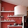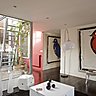 Travaillée sur le concept de l’ouverture, la vie s’organise autour du patio. La couleur rouge, choix d’une couleur forte et dynamique, tantôt printanière, tantôt automnale selon la lumière, sert de ligne de conduite en définissant les espaces fonctionnels comme la cuisine et la salle à manger. L’espace blanc du salon et le sol foncé créent l’unité d’un espace épuré, ponctué de touches colorées ; dans le prolongement, la salle à manger allie ancien et contemporain côtoyant une cuisine d’une simplicité graphique qui affiche une modernité discrète.