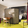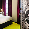 L’hôtel se trouve à l’emplacement d’un ancien couvent du XVIIème siècle, que fréquentait Baudelaire. Il offre 38 chambres de 12 à 30 m² et cinq ambiances différentes, un univers à chaque étage. Et on retrouve la patte inimitable de Christian Lacroix, roi des mélanges et des rencontres de styles. Au premier étage, une ambiance technologique qui met en relief les matières brutes, le béton et les matériaux de récupération. Au second, un esprit contemporain, plus coloré, qui rappelle la décoration et les galeries d’artistes du quartier au XXème siècle. Au troisième, baptisé Dissidi, hommage à la Maison éponyme, située à deux pas de l’hôtel et spécialisée dans la fabrication de meubles d’art, la restauration et la copie de meubles anciens. Au quatrième étage, on monte dans un atelier d’artiste qui évoque la vie bohême du quartier, en conjuguant matériaux bruts et couleurs naturelles. Et enfin au cinquième, on se retrouve dans l’atmosphère rétro du fameux Balajo, au décor plus graphique et dynamique, qui évoque ce mythique bal parisien des années 1950-60.