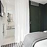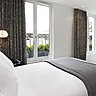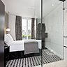 Il aurait pu être décoré par un talentueux architecte de la Wiener Werkstätte (Atelier Viennois) de la Sécession Viennoise du début du XXème siècle. Comme dans l’univers de Josef Hoffman, il rend hommage au graphisme inventif des décors géométrisants. Furieusement tendance, sobre et élégant, le noir et le blanc subliment tout. Accompagnés de motifs simples, géométriques et graphiques, ces deux couleurs totalement opposées, jouent la carte de la modernité intemporelle dans la décoration de cet hôtel, l’Hôtel Emile.