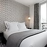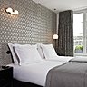Entièrement décoré par Alfred Klopper, l’Hôtel Emile est avant tout un lieu intime et convivial au cœur du Marais historique. La décoration des 29 chambres repose sur le contraste entre les couleurs et les dessins géométriques. L’univers graphique, fort et contrasté, est mis en valeur par des touches de couleurs en aplats : du bleu azur au vert pétrole. Les salles de bains en marbre sont conçues en un espace ouvert sur les chambres. Sur les murs, les carreaux de céramique blanche sont inspirés des fameux carrelages du métro parisien. Les moquettes (Codimat) ont été créées sur mesure, les papiers peints (Cole & Son), les rideaux aux motifs minutieusement choisis, la literie de grande qualité, les écrans plats dernière génération... à l’Hôtel Emile, la variation sur le noir et blanc est jouée jusqu’au bout.