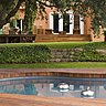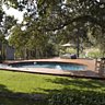 A l’origine, la maison de type méditerranée était très élaborée car dotée de plusieurs bâtiments imbriqués les uns dans les autres Rosarinho a redonné aux murs la chaude couleur ocre d’origine, et sur le toit des tuiles tiges de botte. Elle est également intervenue dans le jardin en transformant la piscine qui était très banale autrefois pour la revêtir d’un deck en teck et pour lui donner un peu plus d’intimité. Rosarinho a créé un mur douche en béton lissé encadré par des racines géantes laissant passer la lumière. Un porte-manteau faisant penser à un arbre et à un grand plateau reçoivent les serviettes de bain des invités. A droite, un petit corner est réservé avec sa table et ses chaises hautes pour prendre des rafraîchissements. Au fond, un double lit bain de soleil parasol de Sempre occupe l’espace, et Rosarinho a créé une grande banquette en teck qui sert de bain de soleil et de rangement pour tout le matériel de bain.