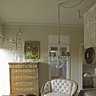 Dans la chambre des maîtres Rosarinho a recréé un décor baroque revisité. Le ciel de lit fait penser aux lourds baldaquins du XVIIème siècle mais avec grande légèreté, la tête de lit de 3 m de large en lin taupe inclut les chevets. Un grand miroir en laiton travaillé a été choisi en Inde par Rosarinho. Le petit lustre déplacé surplombe le grand fauteuil de style Louis XV capitonné de soie grège. La salle de bains traitée comme un spa en tadelakt anthracite est ouverte sur le jardin par de grande baies contemporaines. A la tombée de la nuit les lumières s’allument et les ombres donnent une ambiance chaleureuse et secrète. Toutes ces touches de couleurs et de différents styles offrent une atmosphère exceptionnelle à ce petit coin de paradis recréé pour la plus grande joie des propriétaires qui viennent se ressourcer dans ce petit domaine paisible.