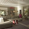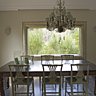 Les pièces de réception étant imposantes, Rosarinho a pu laisser libre cours a son imagination. Le décor est un mélange de classique revisité et de contemporain, replaçant ça et là des meubles anciens appartenant à la famille. Le canapé, pièce maîtresse du salon, a été fabriqué sur mesure avec une partie classique et un retour banquette double très original revêtu d’un tissu classique avec des coloris contemporains turquoise et taupe. Au fond, des panneaux de peintures anciennes font face au petit guéridon présentant une collection de vases ornés de fleurs au couleurs douces. La cuisine contemporaine donne directement sur la salle à manger qui se prolonge jusqu’à la terrasse extérieur. La console et le banc servent au petit déjeuner et permettent de conserver un maximum de place autour des placards.