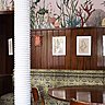 Ici, les crabes escaladent les murs et les poissons frayent à travers une mosaïque colorée. Laura a puisé son inspiration dans le travail de Jean Picart le Doux et ses tapisseries. L’homme et la mer, une de ses œuvres, colorée et onirique, réalisée en 1964, constitue la toile de fond du décor. Tandis que les banquettes retapissées et les colonnes sur lesquelles s’entortillent des cordages de bateau complètent l’ensemble.