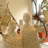 Les Femmes fleurs de Fabienne Auzolle sont des arbres de vie à la fois protectrices et intermédiaires entre le ciel et la terre, déployant la richesse de leurs ornements de leurs bras végétalisés de métal doré, de pierres de couleurs et d’ivoire.
