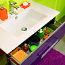 Dans une salle de bains, comme dans n'importe quelle autre pièce, le besoin de rangement est réel. Il faut en effet ranger linge de toilette, produits de beauté, médicaments… Mais la superficie est souvent petite, d’où l’importance de choisir des meubles peu encombrants, par exemple des colonnes de largeur réduite ou des meubles suspendus qui préservent l’impression d’espace.