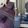 - Tristan : Housse de couette en percale de coton imprimée, motif graphique . Denim ou pourpre . Taie 39€ / Housse de couette à partir de 139€ / Drap à partir de 99€