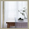 Matières naturelles, superpositions de couleurs, dessin ludique, géométrique… Marion Lévy et Véronique Georgelin ont la fibre textile ! Elles expérimentent depuis des années la sérigraphie, l’impression au cadre plat, qui devient leur moyen d’expression favori. Dans leur atelier parisien, elles élaborent et fabriquent de petites séries très inventives, de façon artisanale et technique : coussins, rideaux, tissu au mètre… Cette année, pour leur nouvelle collection, les pivoines imprègnent délicatement le linge de maison qu’elles ont choisi de travailler sur un support de lin lavé. Les pois (un motif récurent !) s’égrènent à la lisière des rideaux, imprimés eux-aussi à la main malgré leur grand format !