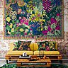 Dans les créations des designers, on ressent le désir de sortir des formats traditionnels carrés ou rectangulaires, de renouveler la palette des couleurs vers des harmonies plus actuelles et travaillées en fonction des tendances de la décoration. Jeux de bicolores noir et blanc, jaune ou gris en camaïeu et explosion de couleurs denses et profondes. « J’ai voulu libérer les oiseaux du cadre de la tapisserie comme on ouvre la porte d’une cage », explique Marie-Aurore Stiker-Metral, diplômée de l’ENSCI et qui s’est fait connaître grâce à la chaise La Pliée, une de ses créations éditée par Ligne Roset. Elle a puisé dans l’imaginaire Aubussonnais et ses animaux iconiques puis repensé son bestiaire enchanté dans des formats différents qui permet une plus grande liberté d’accrochage. « La Dame à la Licorne m’avait émerveillé du haut de mes 10 ans. Les Ateliers d’Aubusson me permettent de tisser le rêve et de raconter des histoires suspendues », raconte Albin Christen qui a décliné des motifs de tradition populaire en les retravaillant dans un esprit monochrome.