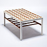 Alors que le pied-de-poule semblait définitivement enterré, il connaît une belle renaissance dans l’univers de la maison, en venant apposer son motif sur le mobilier. A l’origine, ce type de tissu était destiné à l’habillement masculin, puis immortalisé par les tailleurs de Coco Chanel. Devenu un classique du chic parisien des fifties, il tend peu à peu à disparaître, considéré comme un motif trop classique et traditionnel. Avec le retour en grâce du vintage, le pied-de-poule est érigé comme symbole néo-bourgeois, lui assurant un succès qui dépasse les frontières de la mode pour s’imprimer sur les tissus d’ameublement. Comme une traînée de poudre, le motif s’empare de tous les supports des sols aux plafonds, en passant de la cuisine à la salle de bains. Si le pied-de-poule joue généralement sur une opposition en noir et blanc, sa palette de couleurs s’est largement ouverte, pour embrasser toutes les nuances de l’arc-en-ciel.