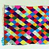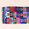 A l’origine de la découverte de cet artisanat spontané Arnaud Maurières et Eric Ossart, voyageurs invétérés à travers le Maroc, depuis plus de 20 ans. « L’aventure a commencé, il y a 6 ans, lors d’un énième voyage dans le sud du Maroc. Rien n’aurait pu arriver sans le guide Lahcen Ait Khaouya qui m’a accompagné à travers le désert. En me conduisant dans son village pour rencontrer sa famille, j’ai découvrir des piles de tapis, aux motifs inventifs, colorés et bariolés. Leurs décors géométrisés en forme de damiers, triangles et les couleurs vives m’ont interpellé. Rien à voir avec les pièces traditionnelles en poils de chèvre, aux coloris neutres, bicolores, noir et blanc ou aux couleurs de terre…», raconte Eric Ossart