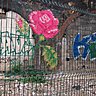 Les Deuz’Bro ( brodeuse en verlan) utilisent les grillages de l’espace urbain comme un canevas sur lesquels ils brodent des lettres et motifs à la base des diagrammes de point de croix, leur propre nom est ainsi stylisé à la manière d’un graff de tulle fluo pour être bien visible. Grillages ordinaires si possible non alvéolés sont les bienvenus.