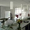 « Notre idée de travailler à la maison avec Miki, fait partie de toute cette différence d'aujourd'hui qui réside dans le sur-mesure. En développant l'idée des cloisons japonaises et en y intégrant le papier, on a imaginé toutes les fantastiques possibilités d'utilisation que ce matériau offrait à la décoration d'intérieur. Comme le papier n'est pas pérenne, en l'associant au verre avec l'entreprise de résine acrylique Dacryl, nous avons commencé à produire des panneaux qui permettent d'être éclairés par la tranche avec des Leds de forte puissance, des panneaux éclairés, à la fois éclairants sur trois mètres de hauteur ».