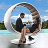 Différents matériaux et tissus sont utilisés pour cette œuvre, avec entre autres le bois, la fibre de verre ainsi que le cuir. Même dans une pièce pleine, le « Hug Chair » conserve ce pouvoir d’intimité entre les personnes qui s’y installent.
