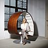 Conçue à partir d’une seule et unique structure circulaire en bois fixée par un piétement central en acier, le fauteuil « Hug Chair » est un hymne au rapport entre le corps et le mouvement. Avant de se lancer dans le design, Gabriella Asztalos était une danseuse professionnelle de ballets classiques; la beauté du mouvement est donc un élément qu’elle chérit à travers cette création.