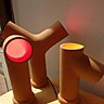 Raelyn Larson, Dimanche 13 juin 2010, naissance de cette lampe, inspirée des tuyaux de raccordement de canalisations, en faïence rouge de coulage, intérieur peint à la main.