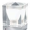La lampe Block, toute de verre vêtue, se pose aussi bien sur un bureau, une table que sur une étagère. Fonctionnelle et simple, cette ampoule encastrée dans deux blocs de verre est le reflet d’un design élégant et singulier.
