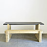 La Loue réinvente l’alliage de l’acier et du bois dans un esprit contemporain. La collection a pour vocation de sublimer la beauté des matériaux empruntant les codes du mobilier industriel, mais aussi ceux du mobilier rural traditionnel. Le bois est brut de sciage et une quantité de finitions est possible, laissant apparaître de façon plus ou moins prononcée les veines du bois : sablage, ponçage, application de teintes primaires... L’esprit de la collection ? Comme le raconte le jurassien discret qu’est Pierre Casenove : « chaque pièce est fabriquée à la main et possède une connotation rurale, adaptée à un usage actuel ». La Loue est aussi agenceur et fabrique des cloisons, avec des baies vitrées sur mesure pour créer des séparations de pièces. En bois brut naturellement…