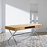 Soucieuse de poursuivre son développement, la société Minvielle crée un secteur réservé au mobilier de bureau. Pierre Guariche conçoit alors le bureau Président. Ce bureau, réalisé avec des matériaux nobles, est destiné aux « cadres dirigeants ». Il évoque le prestige du patron des « Trente glorieuses » qui symbolise la prospérité économique française. Bureau Président, structure en panneau latté, placage teck, 990 €.