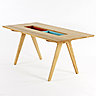 Développé par Gesa Hansen, la collection « Remix » comprend un bureau, une série de tables basses, une table haute, une malle et un buffet. Ce projet se situe à la croisée des générations ; une vision qui permet l’association d’éléments d’archives revisitées et de design contemporain.