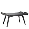 Modularité, confort et partage. Ces mots doux résonnent dans ses œuvres, et notamment dans sa table d'appoint Lupo. Quatre pieds obliques accueillent un plateau large aux poignées évidées, le tout en chêne massif teinté noir. En un geste, la petite table s'envole pour devenir un plateau-repas, pratique, agréable même.