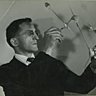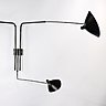Applique murale, deux bras fixes (1953) : Deux abat-jour tétine en tôle emboutie laquées noirs, pivotant sur des rotules en laiton. Un bras coudé pivote sur tige d’acier.