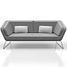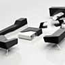 Plus sages, un fauteuil bas et un canapé, aux lignes obliques et montés sur un piétement tubulaire aérien complètent la collection d’assises. Deux feuilles cintrées constituent la table basse « Double Skin » dont les deux éléments glissent l’un sur l’autre offrant ainsi une intéressante modularité et un jeu d’opacité et de transparences.