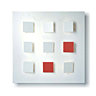 L’applique Métalo est en aluminium peinte ou imprimés de sérigraphies. Elle est composée de petits caches carrés et orientables disposés en relief sur un grand support également carré (82 x 82 cm). Le décalage recherché par la designer et créé par le relief surprend l’œil de l’observateur. L’applique Métalo est disponible en deux versions ; Métalo 4 et Métalo 9, l’une rouge, l’autre blanche. Petit plus pour ceux qui la veulent dans les deux tons : la version bicolore.