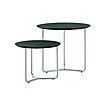 Les couleurs sobres ou flashy, les plateaux en verre laqués ou bois travaillés s’accordent au style de chaque intérieur. Les tables gigognes en verre poli ou dépoli, transparentes ou teintées en noir ont beaucoup de succès. On les trouve chez Menzzo avec le modèle Verra, chez Camif, modèle Saphir, chez BoConcept (modèles Occa 2010,2012, 2230) ou encore chez Drimmer et Artelano (éditeur français de mobilier contemporain depuis 1972). Le cube chez Busso, et le designer Bosco Fair, est noir, rouge ou blanc, couleurs passionnelles pour une géométrie féconde. L’acier de son côté est la star de Pulpo avec leurs tables gigognes zen et stylisées : Makrame flower et Makrame grafico. Il en est de même pour la marque Coco&co édition avec ses modèles Cubical et Minimal.