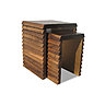 Depuis, la table gigogne, qu’elle soit traditionnelle, en bois (noyer, hêtre…) se modernise. Grâce à une nouvelle conception de l’espace, un travail sur le mouvement, la table gigogne a tapé dans l’œil des designers. Costantini avec ses modèles Dorena et Lazzaro, Bla Station et ses tables gigognes Bimbed et Bimbord revisitent le bois en lui donnant des formes arrondies ou plus travaillées. Un chef d’œuvre est la table gigogne Jardins Secrets de la marque Kafka goes pink par le designer Fady Saliba conçue de bois de noyer serti de nacre.