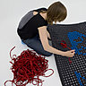 Le tapis "embrodery" est fait à la main, surdimensionné il est réalisé tout en feutre, illusion d'optique .....plus vous vous tenez près de l’objet et plus le motif pixellisé disparaît, mettant alors en évidence le point de croix et son matériau naturel en entrant directement dans la structure de la matière.
