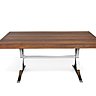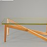 Après le contreplaqué moulé, Caillette expérimente des matériaux plus cossus comme les placages en Palissandre de Rio, les cuirs et les capitonnages destinés à une clientèle plus aisée. Car il fut le premier à comprendre que le mobilier contemporain s’adresse à une clientèle fortunée. En 1953, il suivra la campagne lancée pour promouvoir l’Acajou français et comme Joseph-André Motte, abandonnera les bois clairs. Les meubles de Caillette seront diffusés par les Magasins du Printemps et son « 8ème art » devient un aménagement économique et astucieux. Il défend aussi, le premier, les produits verriers dans « La Maison du Soleil » dans l’Exposition de l’Habitation, au Salon des arts ménagers de 1957. Ainsi, René-Jean Caillette démontre que l’emploi du verre massif permet d’obtenir un intérieur plus lumineux et reposant. Une idée très moderne à laquelle la table basse avec plateau en verre massif, présentée dans cette exposition n’est pas étrangère.
