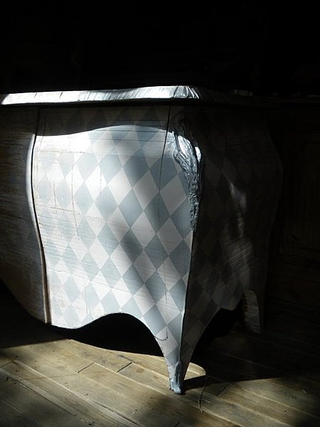 Meubles de style en carton 11/11/2010 | Antiquités / Brocante | Charlotte Roulleau Commode Louis XV, chevets galbés et meuble de drapier en carton conçus et réalisés par Emilie Mazeau Langlais