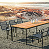 On recherche surtout le bon accord entre table et chaises de repas. Les chaises pliantes sont idéales si la place est comptée et les fauteuils de table avec accoudoirs et dossier souple ou tressé sont plus confortables. La tendance est non plus au mobilier dépareillé ni au total look, mais plutôt au mélange subtil de matériaux haut de gamme, teck, métal, corde tressée… Côté couleurs, on opte de préférence pour une base neutre pour la table, un ou deux coloris plus faciles à vivre afin d’éviter l’accumulation de chaises de même couleur. Les fabricants proposent de larges choix de coloris qui offrent de multiples possibilités.
