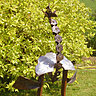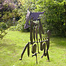Pour cet artiste, l’art de créer un jardin consiste aussi à mettre l’Art au jardin. Preuve en est, une cigogne les pattes dans l’eau, un minotaure impressionnant, un coléoptère aux ailes disproportionnées. C’est un tout un bestiaire d’acier qui ponctue le jardin, lui donne une forme.