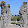 L’agrégat d’une soixantaine d’ancres marines, s’inscrivant dans la lignée des accumulations d’objets dont accouchait Arman, est écho aux activités navales de la cité d’antan. Quelques pas plus loin, les sculptures ovines de Claude et François-Xavier Lalanne se sont éloignées de leur troupeau. Ces moutons, façonnés dans le béton d’époxy et le bronze, sont touche faunique nichée dans un écrin végétal. Autre apparition le long du chemin, les Pleureuses d’Eugène Dodeigne, errent parmi les âmes des navigateurs disparus. Ces monolithes de pierre de Soignies scrutent désespérément l’horizon, comme ils espèrent y voir surgir les marins partis en mer.